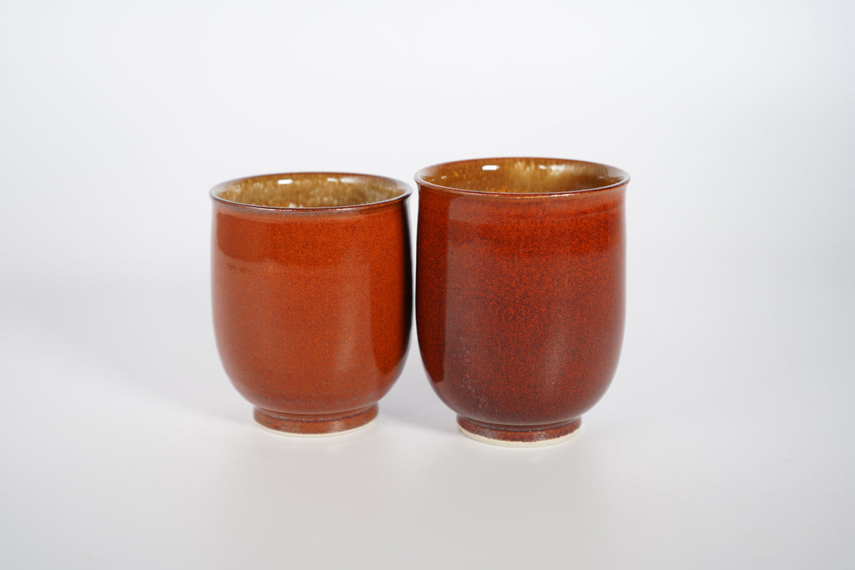When fired in a kiln, the iron in the glaze produces a deep red color like that of a persimmon.
